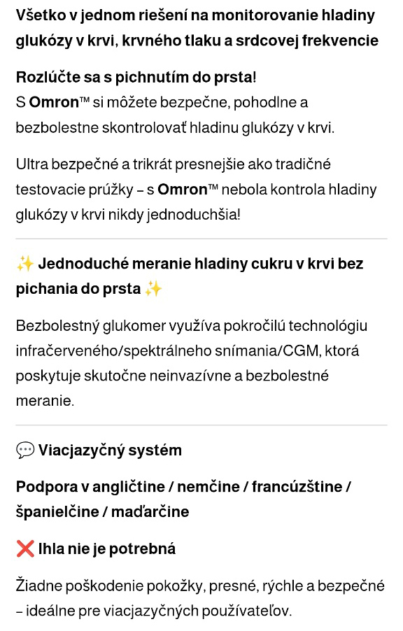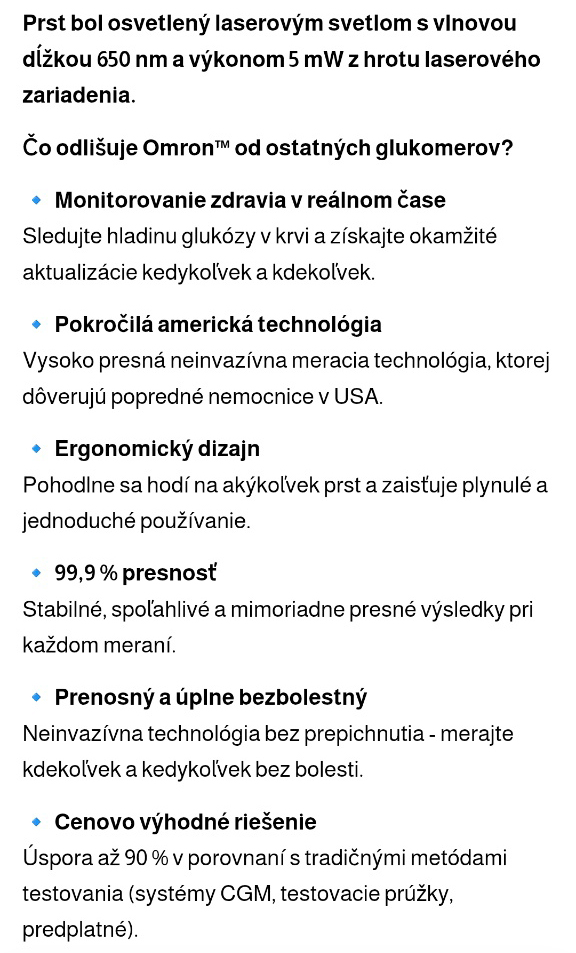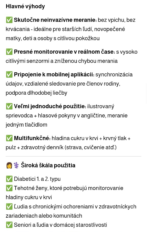 [7 v 1] Inteligentný glukomer (merá hladinu glukózy v krvi, kyselinu močovú, pulz, hladinu kyslíka v krvi, telesnú teplotu, funkciu pečene a obličiek – všetko bezpečne a neinvazívne)